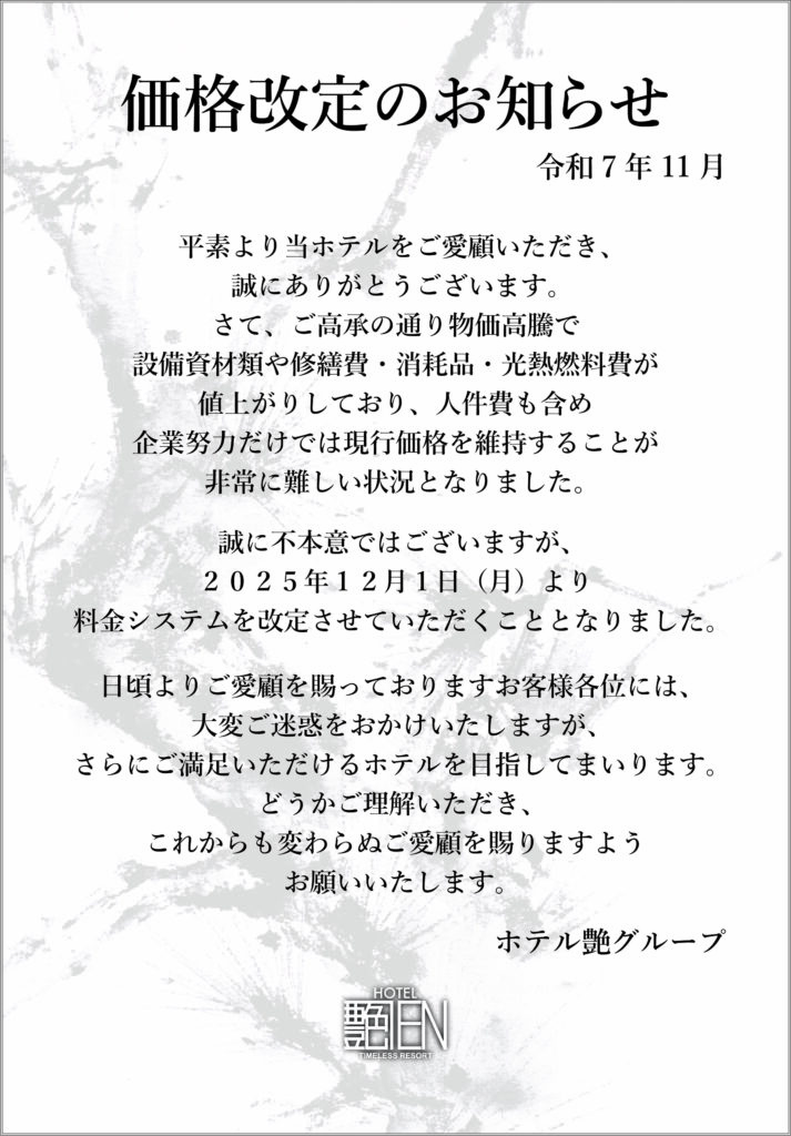 ※改定後の料金詳細は12/1以降の各店舗ホームページ[料金・お部屋・設備]よりご確認お願い致します